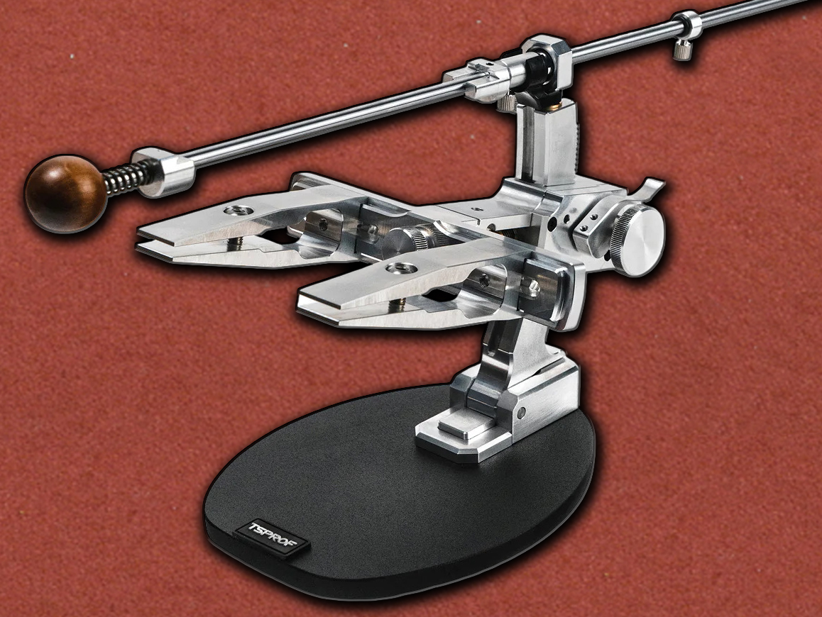 The TSPROF Kadet Pro is compatible with all clamps from the TSPROF K03 sharpening system: fillet, single, double, and small universal table for sharpening of tools.