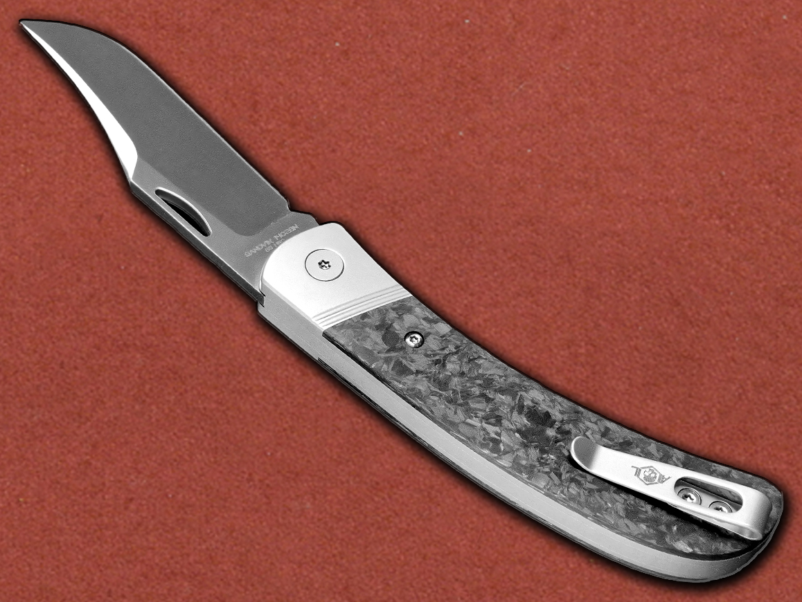 The Union Jackal reimagines the classic Barlow with a bold, hyper-modern twist. Its ergonomic, ambidextrous, slightly contoured handle fits like a glove in hands of all sizes, offering exceptional grip and versatility across multiple hold styles. Crafted with a satin-finished stainless steel integral bolster and liner, paired with sleek black carbon fiber scales on this prototype, the handle exudes sophistication and strength. Held together by Torx screws, it’s built for future customization—whether through ProForge’s own offerings or third-party upgrades coming soon.