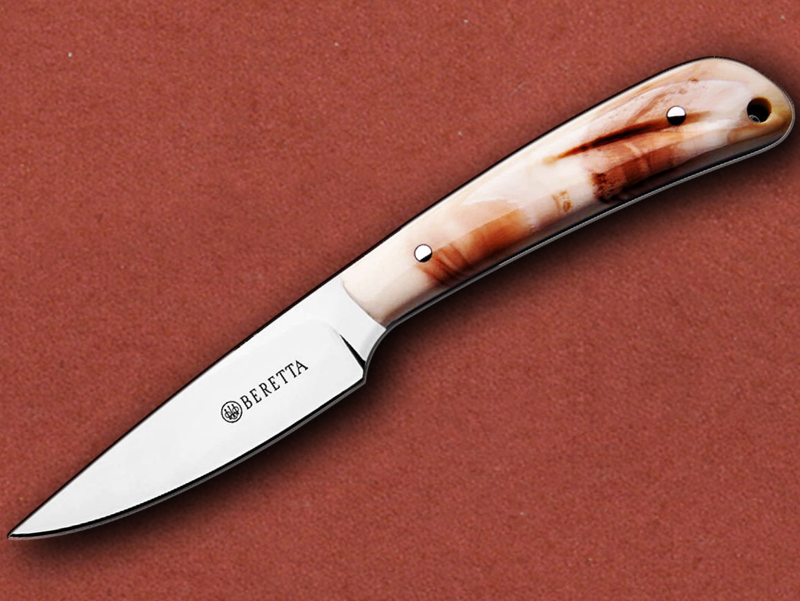 The Beretta Everyday Carry / Bird & Trout Knife with Warthog Tusk Handle is a premium fixed-blade knife designed for versatile use in hunting, fishing, and everyday carry tasks.