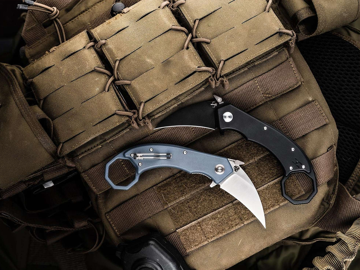 The Böker Plus HEL Karambit is a high quality emerson karambit pocket knife designed by Alessandra De Santis of Hydra Design.